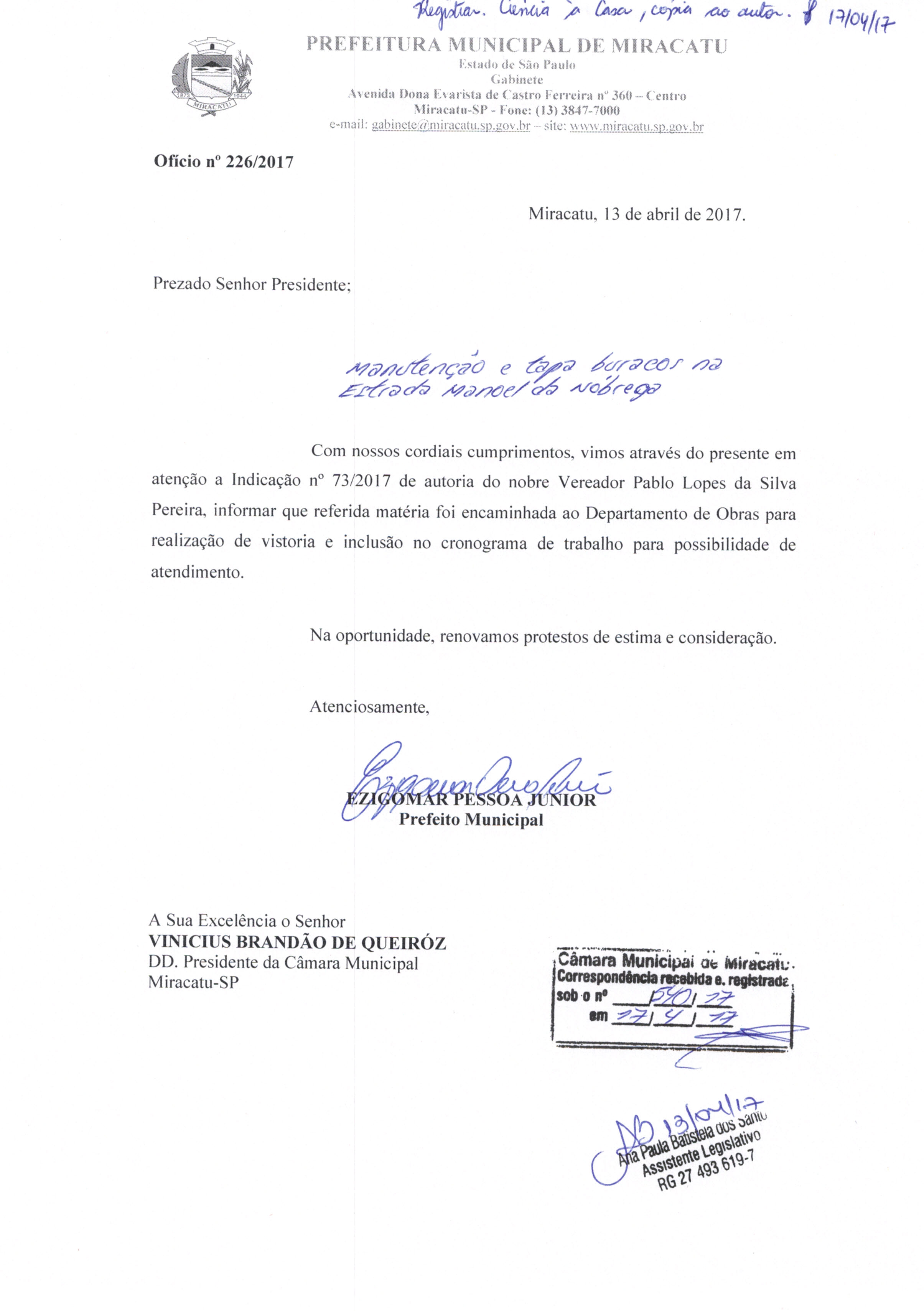 | registro 540/17 | Ofício reposta proposição | 17/04/2017 | prefeitura miracatu | 156.jpeg |