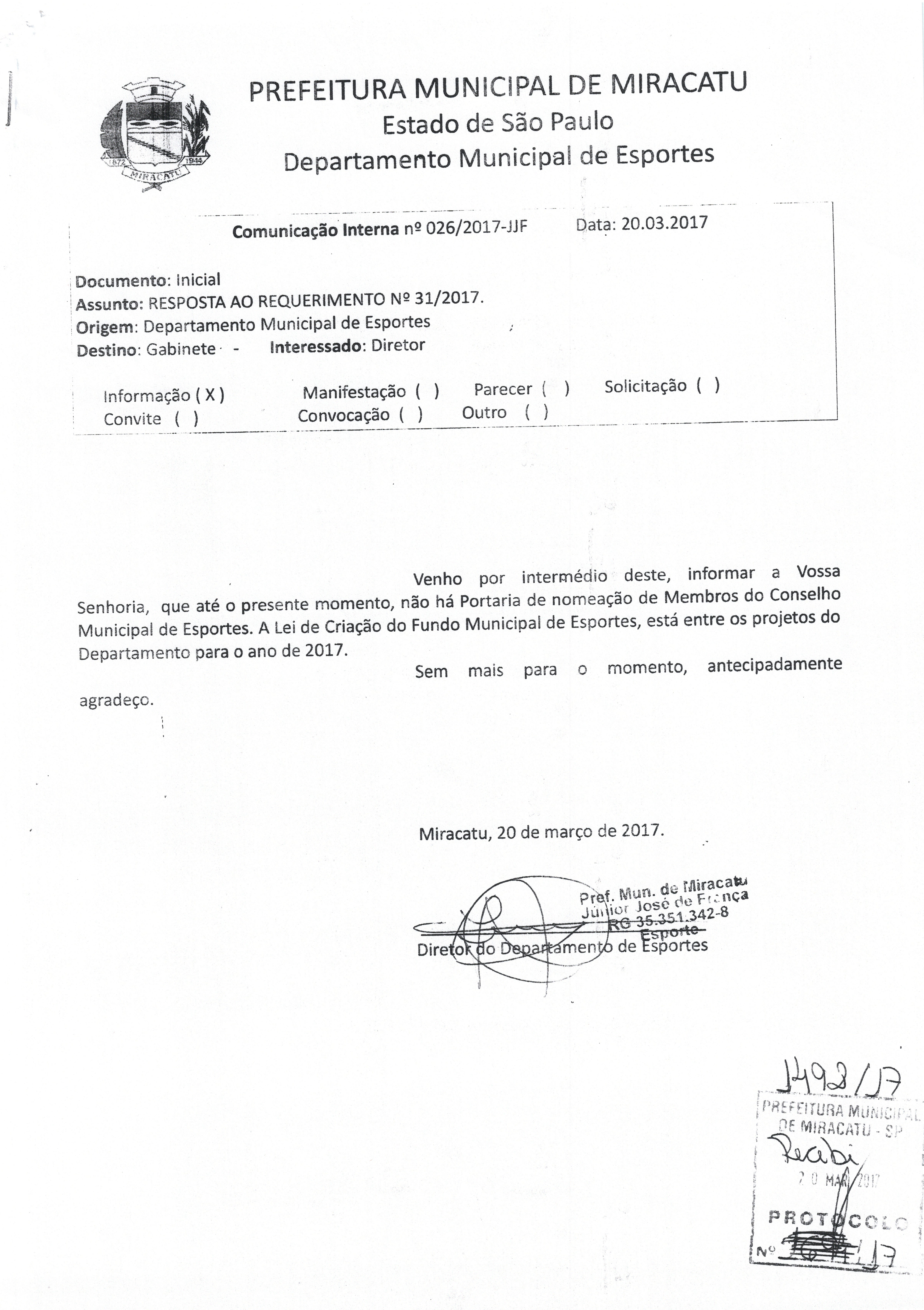 Documentos Acessórios (Requerimento nº 31 de 2017)
