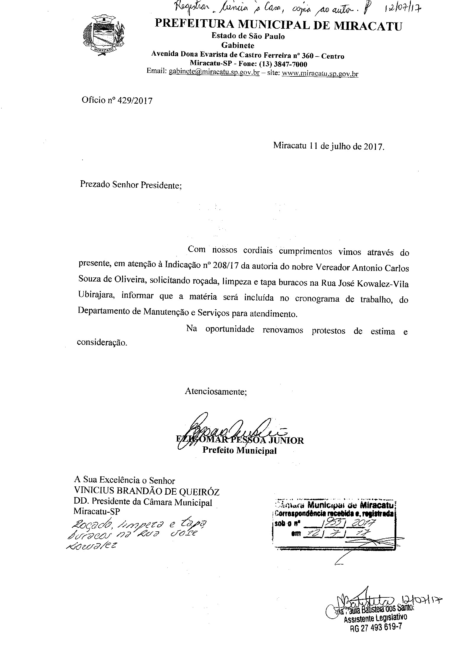 Documentos Acessórios (Indicação nº 208 de 2017)