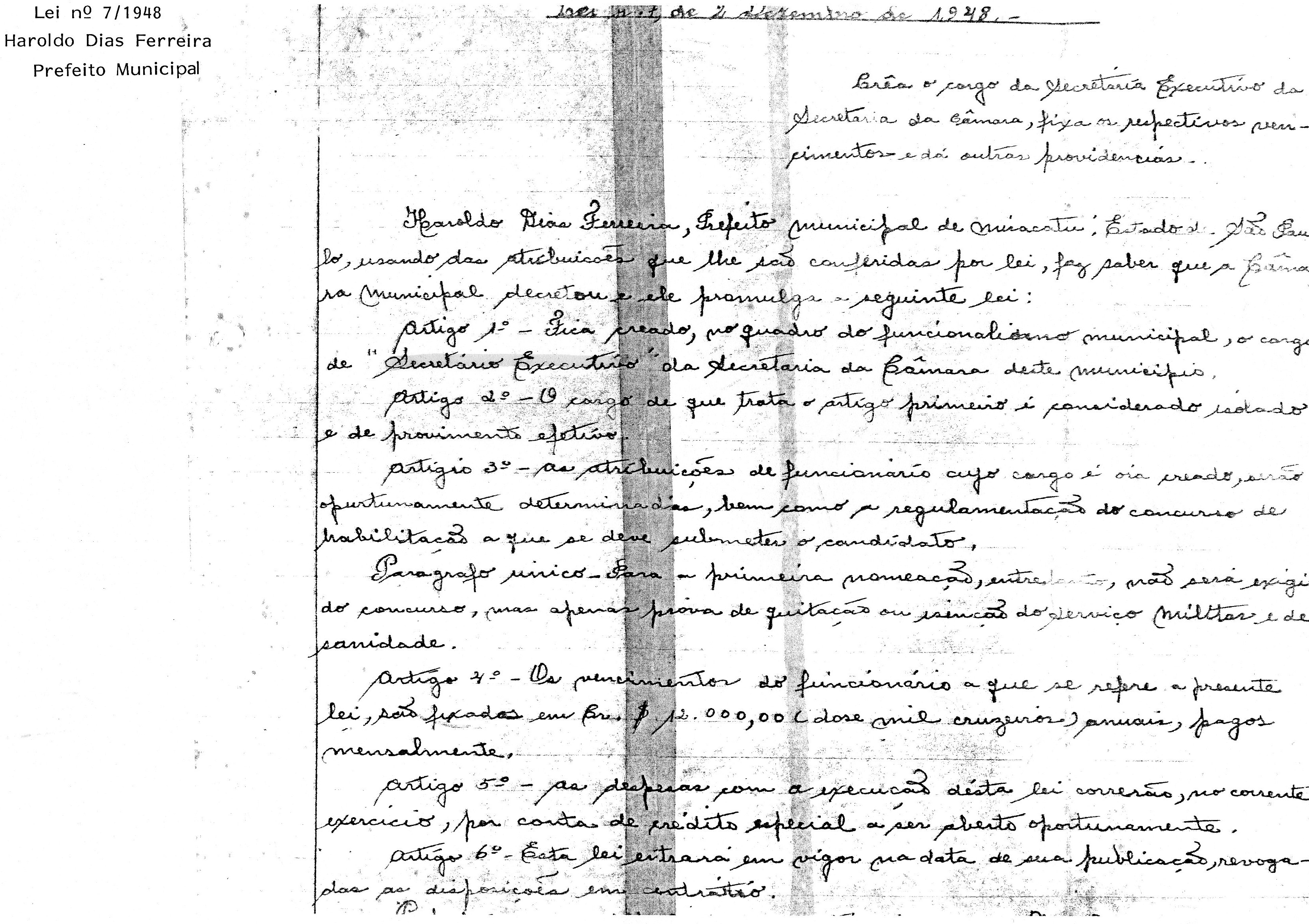 Ementa: ORÇA A RECEITA E FIXA A DESPESA DO MUNICÍPIO DE MIRACATU PARA O EXERCÍCIO DE 1948 |