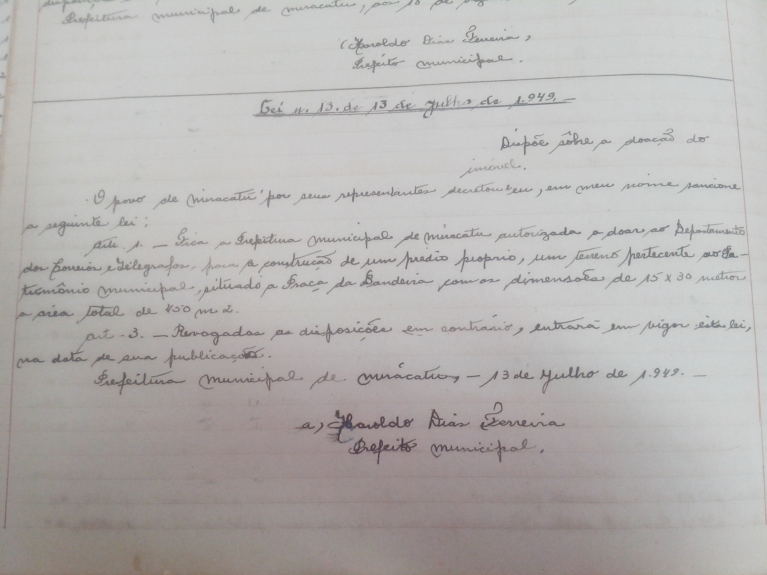Ementa: ORÇA A DESPESA E FIXA A DESPESA DO MUNICÍPIO DE MIRACATU PARA O EXERCÍCIO DE 1949 |